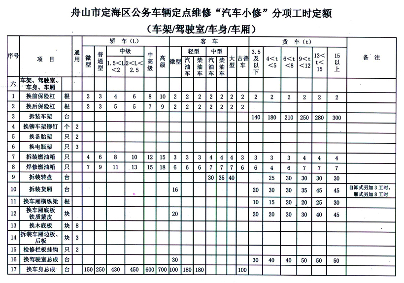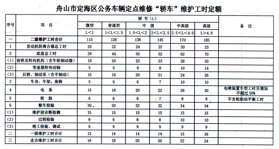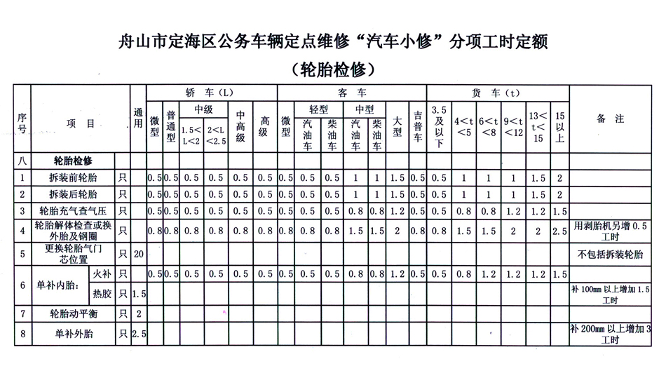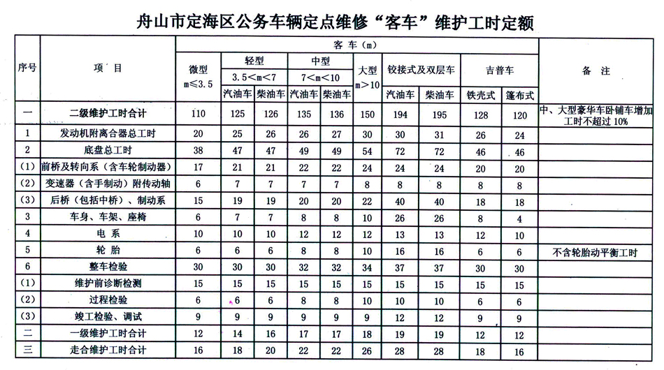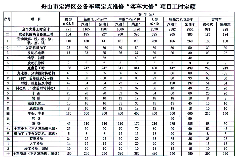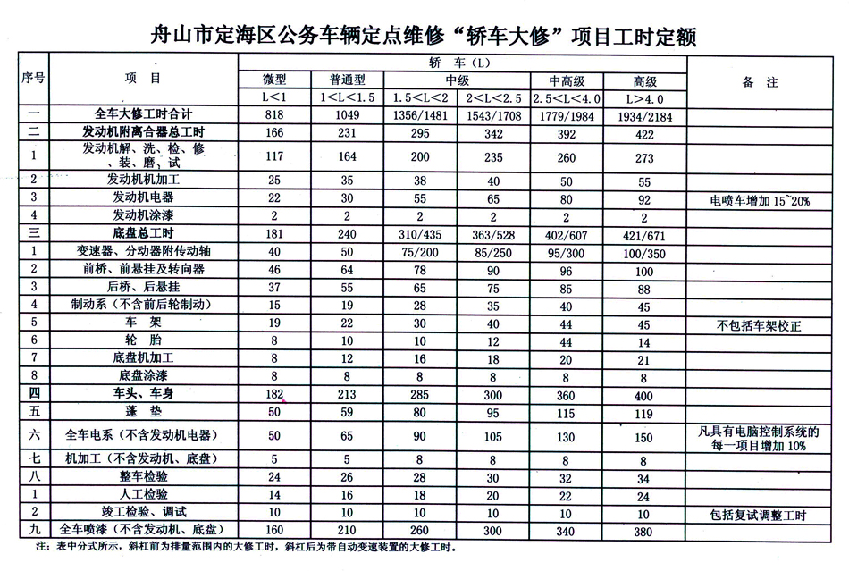 汽车维修工时定额
