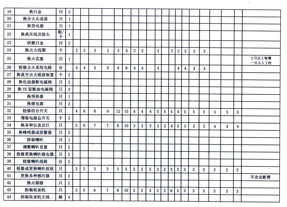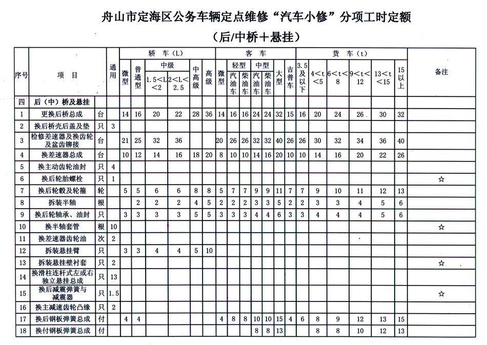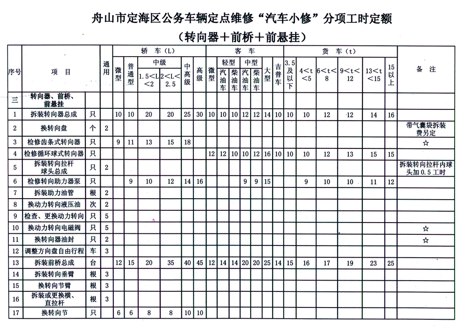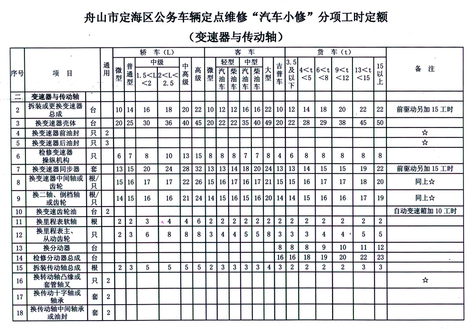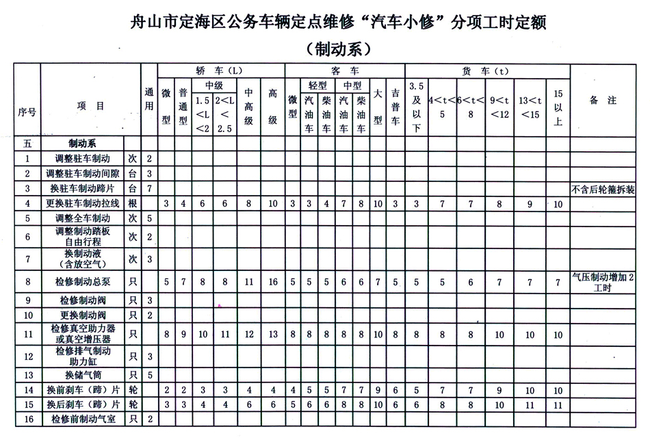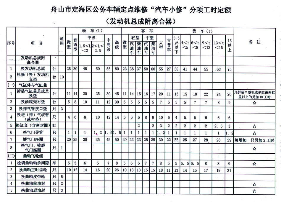 汽车维修工时定额